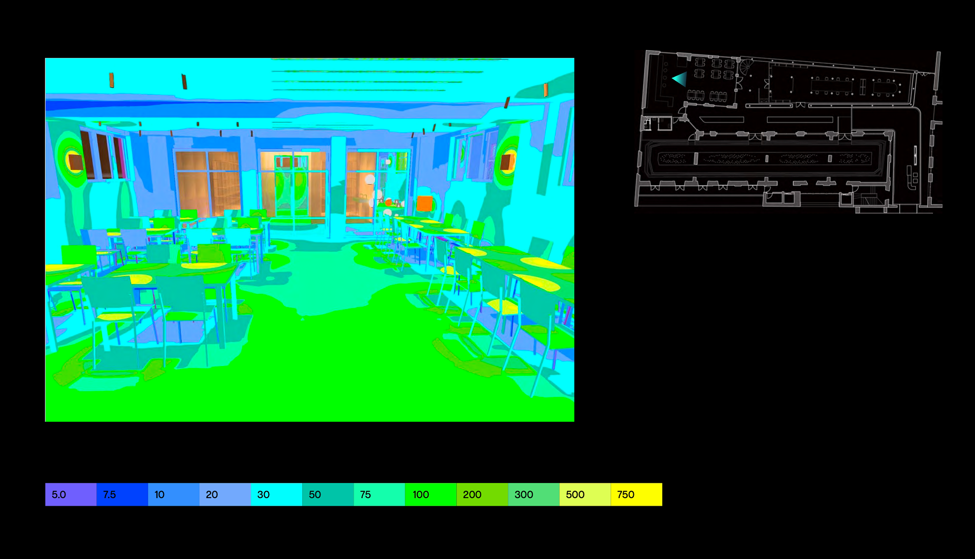DIALux false colour rendering - Bistro