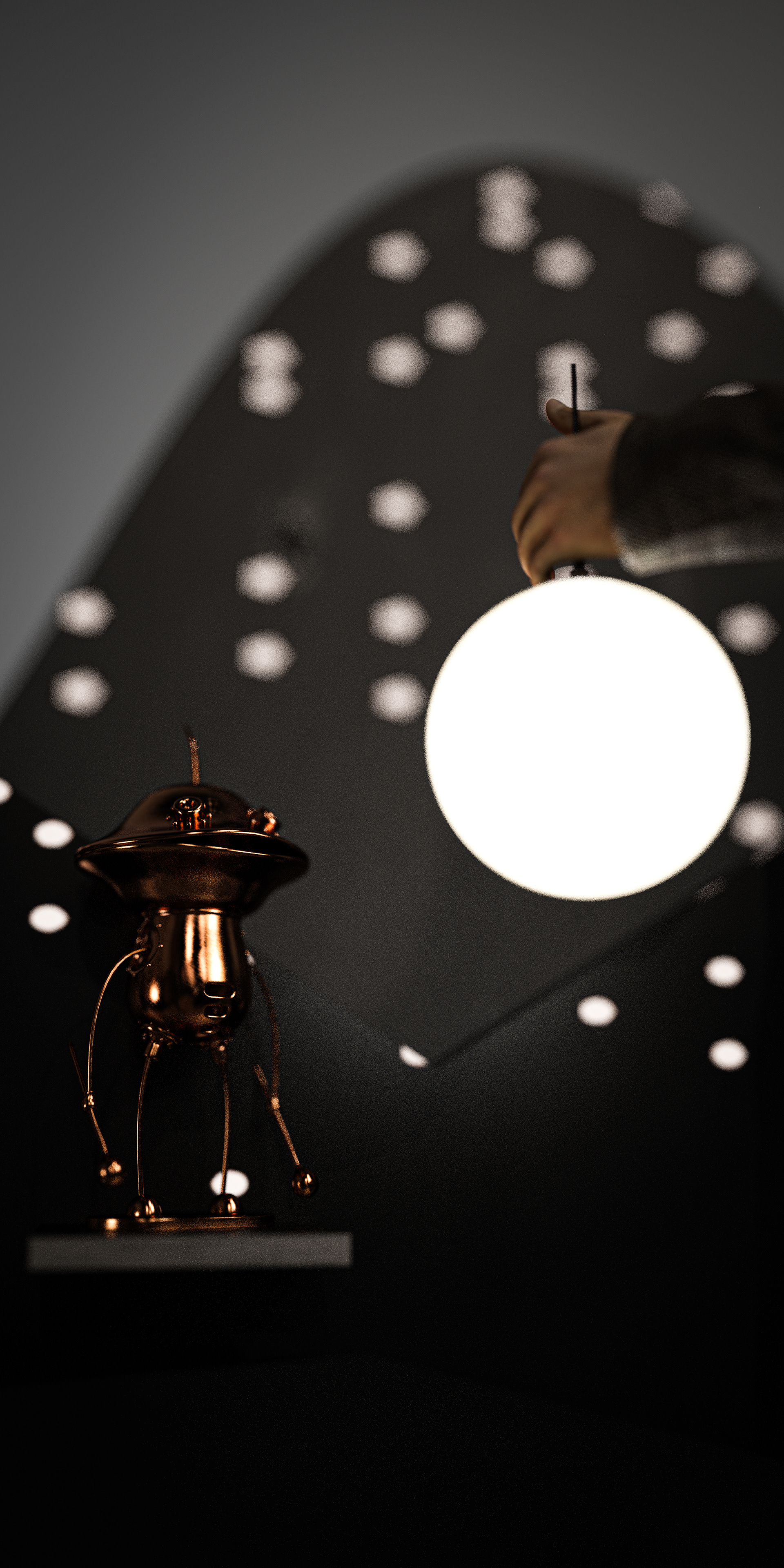 Just like the moon in the sky, following and watches our every move, every night for centuries this project aims to take the visitors to the darkness, adorned with shinning stars and observe the “forgotten lives” and “lost cities”.