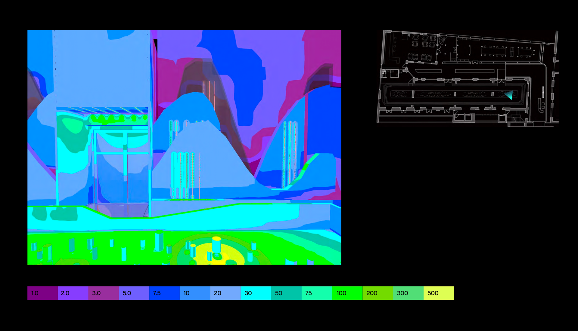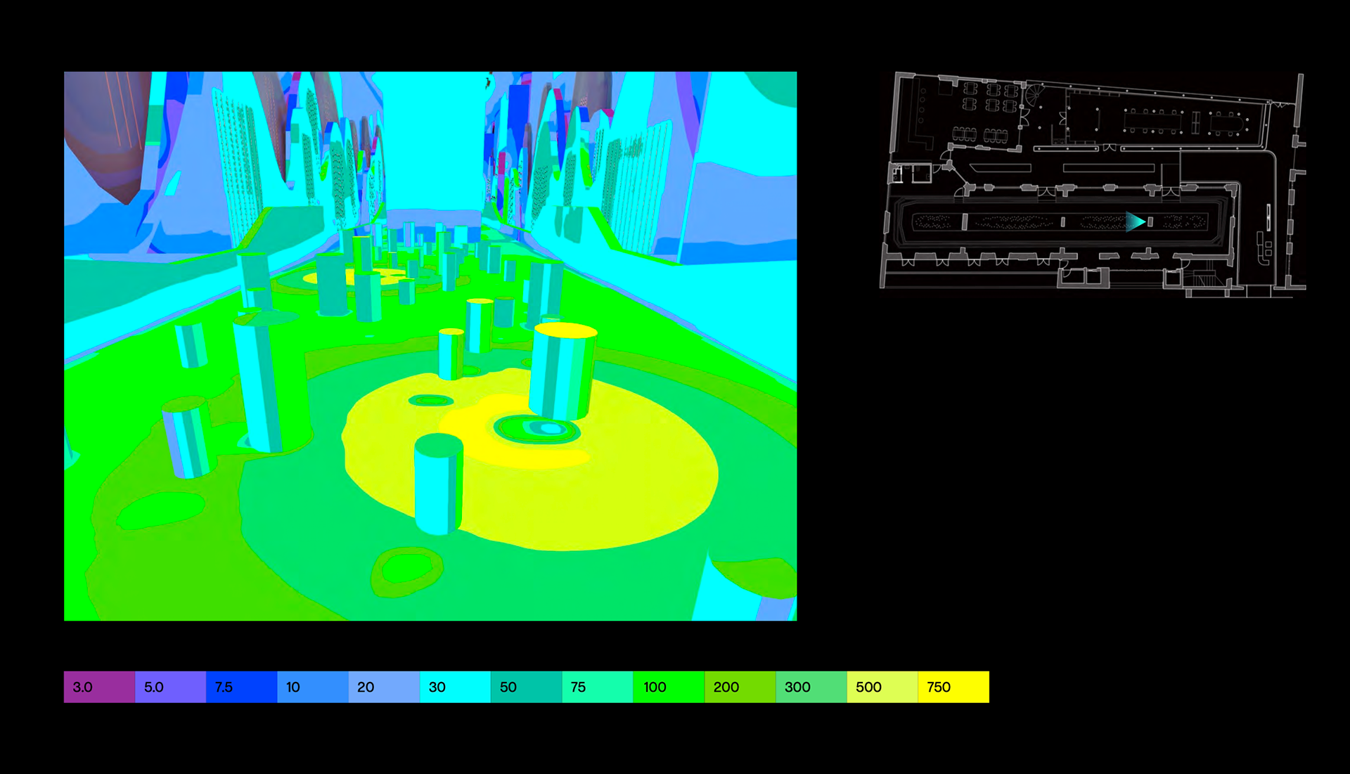 DIALux false colour rendering - Exhibition hall