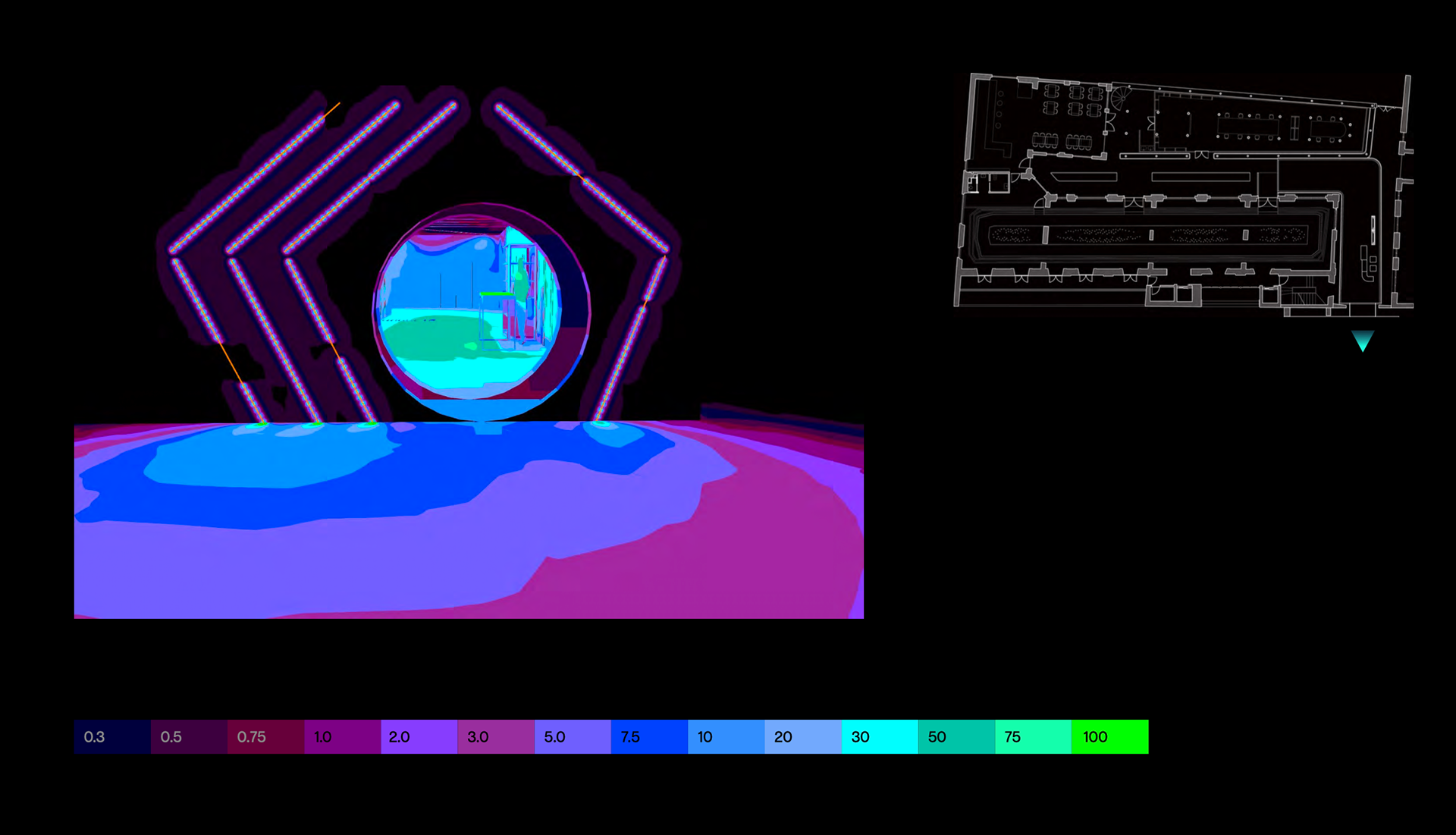 DIALux false colour rendering - Transition space